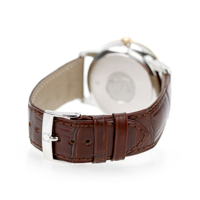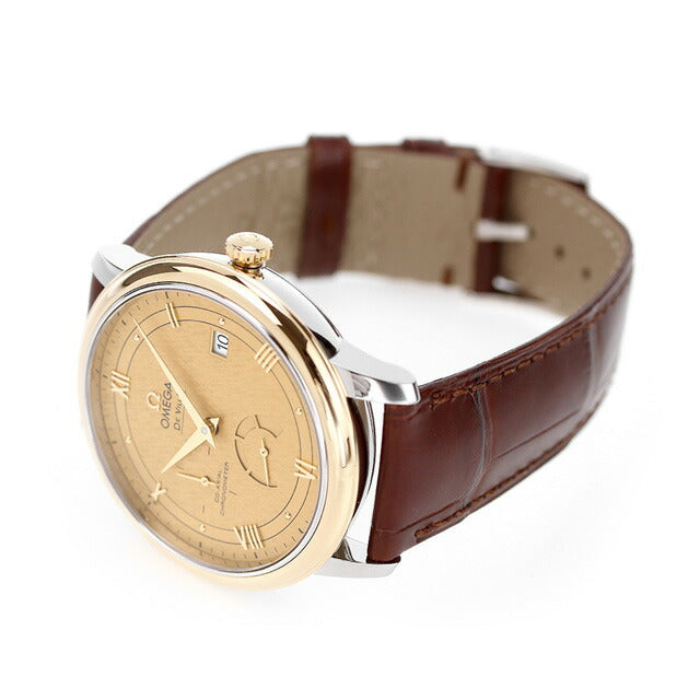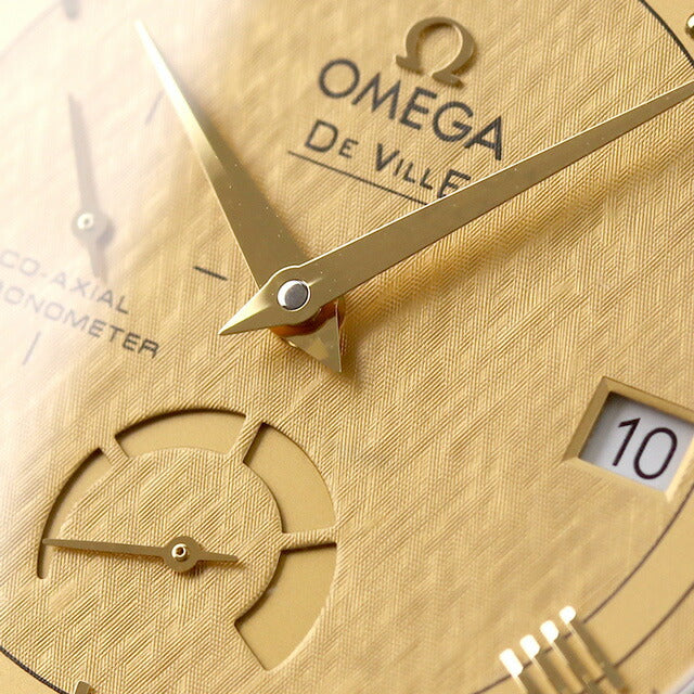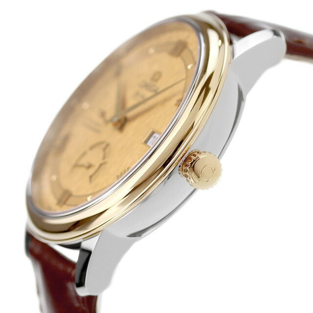 5年保証キャンペーン オメガ デビル プレステージ コーアクシャル クロノメーター パワーリザーブ 39.5mm 18K スイス製 メンズ 腕時計 424.23.40.21.08.001 OMEGA DE VILLE PRESTIGE アナログ イエローゴールド ブラウン ◆オメガは1848年、ルイ・ブランによってスイスにて設立された高級腕時計ブランドです。1894年に発表した懐中時計のムーブメント、「Ω(オメガ/達成と極致の意)」という言葉を正式な社名として採用しました。 デ・ヴィル (DE VILLE)はフランス語で「都会」という意味をもちます。クラシカルでエレガントなデザインが、多くのオメガ愛好家を惹きつけています。シルク生地にみられるクロス模様のパターンが施された、オパリン仕上げのシャンパン色のダイアルが特徴です。針はゴールドプレート仕上げで、アワーマーカーはゴールドプレート仕上げの6つのカボションとローマ数字で構成されています。3時位置に日付窓、9時位置にスモールセコンド、6時位置にパワーリザーブ表示。 機械式腕時計