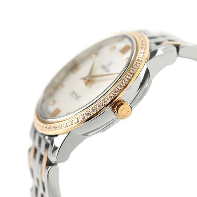 5年保証キャンペーン オメガ デ・ヴィル プレステージ 27.4mm ダイヤモンド スイス製 レディース 腕時計 424.25.27.60.55.002 OMEGA De Ville Prestige アナログ ホワイトシェル シルバー レッドゴールド 白 ◆オメガは1848年、ルイ・ブランがスイスに時計工房を創設したことから始まります。1894年に発表した懐中時計のムーブメント、「Ω(オメガ/達成と極致の意)」という言葉を正式な社名として採用しました。 スピードマスターは、アポロ11号で月面に降り立った宇宙飛行士の腕に装備されていたことから、“月面で着用された最初の時計”として知られています。 オメガ「デ・ヴィル プレステージ」コレクションは、そのクラシカルでエレガントなデザインが、多くのオメガ愛好家を惹きつけています。豪華な仕上げとタイムレスなデザインを備えたシンプルなスタイルが特徴です。ダイアルはホワイトマザーオブパールが採用されています。
