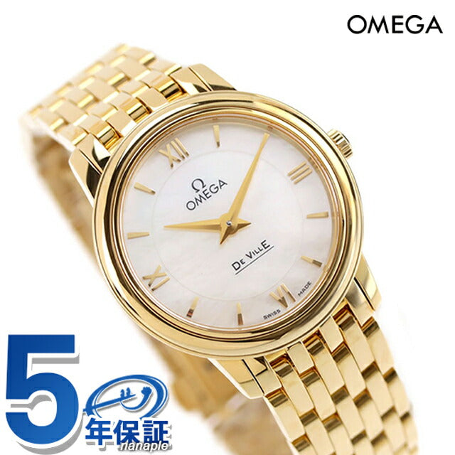 5年保証キャンペーン オメガ デ・ヴィル プレステージ 27.4mm スイス製 レディース 腕時計 424.50.27.60.05.001 OMEGA De Ville Prestige アナログ ホワイトシェル イエローゴールド 白 ◆オメガは1848年、ルイ・ブランがスイスに時計工房を創設したことから始まります。1894年に発表した懐中時計のムーブメント、「Ω(オメガ/達成と極致の意)」という言葉を正式な社名として採用しました。 スピードマスターは、アポロ11号で月面に降り立った宇宙飛行士の腕に装備されていたことから、“月面で着用された最初の時計”として知られています。 オメガ「デ・ヴィル プレステージ」コレクションは、そのクラシカルでエレガントなデザインが、多くのオメガ愛好家を惹きつけています。豪華な仕上げとタイムレスなデザインを備えたシンプルなスタイルが特徴です。ダイアルはホワイトマザーオブパールが採用されています。