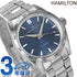3年保証キャンペーン ハミルトン ジャズマスター パフォーマー オート 34mm スイス製 メンズ レディース 腕時計 H36115140 HAMILTON JAZZMASTER Performer Auto アナログ ネイビー ◆HAMILTON(ハミルトン)はアメリカ発祥の老舗ブランドです。創業翌年に誕生した懐中時計「ブロードウェイ・リミテッド」は、他の時計よりも正確に時を刻むことから鉄道用時計として採用されました。その後も航空用時計や軍用時計として採用されるなど、品質の高さと流行にながされない独自のデザインが世界中の人々に支持されています。 機能性とスタイルの両方を求める方にぴったりな「ジャズマスター パフォーマー」は、パワフルでスポーツシックな外観が特徴です。標準持続時間80時間のH-10自動巻きムーブメントが駆動する「ジャズマスター パフォーマー オート」は、34mmのステンレススチール製ケースに、シンプルなダイヤルと、存在感のあるステンレススチール製ブレスレットが組み合わされています。 機械式腕時計