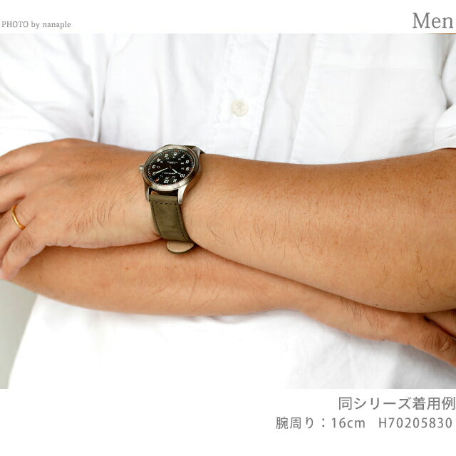 3年保証キャンペーン ハミルトン カーキ フィールド チタニウム オート 38mm チタン スイス製 自動巻き メンズ 腕時計 H70205860 HAMILTON KHAKI FIELD TITANIUM AUTO アナログ グリーン ライトブラウン 革ベルト ◆HAMILTON(ハミルトン)はアメリカ発祥の老舗ブランドです。創業翌年に誕生した懐中時計「ブロードウェイ・リミテッド」は、他の時計よりも正確に時を刻むことから鉄道用時計として採用されました。その後も航空用時計や軍用時計として採用されるなど、品質の高さと流行にながされない独自のデザインが世界中の人々に支持されています。 1世紀にわたる系譜を誇るハミルトンのミリタリーウォッチ。軽量な素材を組み合わせた「カーキ フィールド チタニウム オート」は、現代のヒーローにふさわしい究極の万能時計です。まさにフィールドでの活動にふさわしい38mmのケースは、オリジナルモデルに忠実なデザインで、快適性や順応性が際立ちます。 機械式腕時計