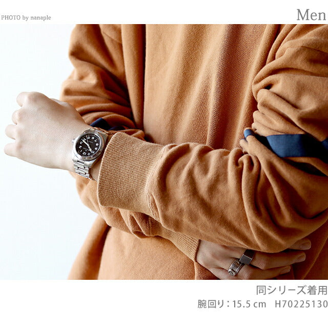 3年保証キャンペーン ハミルトン カーキ フィールド エクスペディション オート 37mm スイス製 メンズ 腕時計 H70225130 HAMILTON KHAKI FIELD EXPEDITION AUTO アナログ ブラック 黒 ◆HAMILTON(ハミルトン)はアメリカ発祥の老舗ブランドです。創業翌年に誕生した懐中時計「ブロードウェイ・リミテッド」は、他の時計よりも正確に時を刻むことから鉄道用時計として採用されました。その後も航空用時計や軍用時計として採用されるなど、品質の高さと流行にながされない独自のデザインが世界中の人々に支持されています。 大自然へと誘う「カーキ フィールド エクスペディション」は、どんな場所にも適応するアドベンチャーウォッチ。コンパスのデザインが、太陽が頼りとなる冒険の旅で進むべき道を示してくれます。37mmのステンレススチール製ケースと、ケースにマッチするブレスレット、さらにムーブメントを悪天候から守るねじ込み式リューズを備えています。質感のあるブラックダイヤルに、視認性に優れるスーパールミノバ加工を施した「カーキ フィールド エクスペディション」は、いかなる状況下でもタフさを発揮します。 機械式腕時計