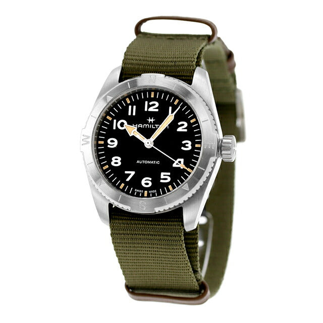 3年保証キャンペーン ハミルトン カーキ フィールド エクスペディション オート 37mm スイス製 メンズ 腕時計 H70225931 HAMILTON KHAKI FIELD EXPEDITION AUTO アナログ ブラック カーキ 黒 ◆HAMILTON(ハミルトン)はアメリカ発祥の老舗ブランドです。創業翌年に誕生した懐中時計「ブロードウェイ・リミテッド」は、他の時計よりも正確に時を刻むことから鉄道用時計として採用されました。その後も航空用時計や軍用時計として採用されるなど、品質の高さと流行にながされない独自のデザインが世界中の人々に支持されています。 どんな場所にも適応するアドベンチャーウォッチ。コンパスのデザインが、太陽が頼りとなる次の旅で進むべき道を示してくれます。ステンレススチール製ケースと、テキスタイルを使用したNATOストラップ、さらにねじ込み式リューズや、サンドブラスト加工が施されたブラックダイヤルを備え、最もタフなタイムピースに仕上がっています。 機械式腕時計