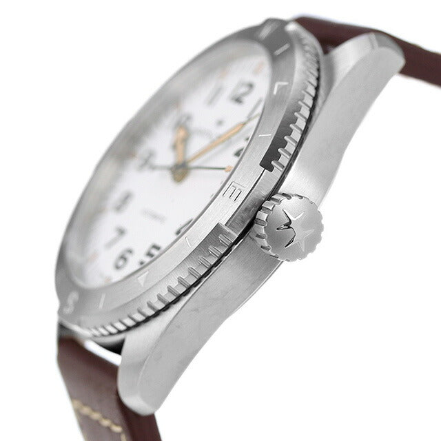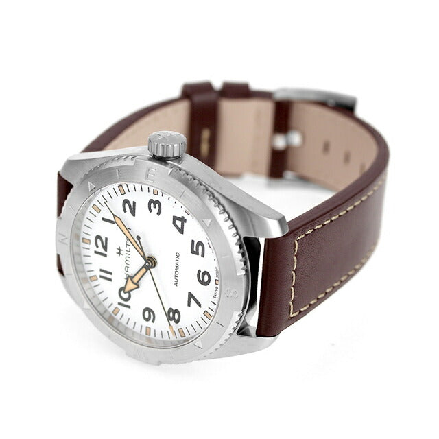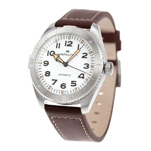 3年保証キャンペーン ハミルトン カーキ フィールド エクスペディション オート 41mm スイス製 メンズ 腕時計 H70315510 HAMILTON KHAKI FIELD EXPEDITION AUTO アナログ ホワイト ダークブラウン 白 ◆HAMILTON(ハミルトン)はアメリカ発祥の老舗ブランドです。創業翌年に誕生した懐中時計「ブロードウェイ・リミテッド」は、他の時計よりも正確に時を刻むことから鉄道用時計として採用されました。その後も航空用時計や軍用時計として採用されるなど、品質の高さと流行にながされない独自のデザインが世界中の人々に支持されています。 大自然へと誘う「カーキ フィールド エクスペディション」は、どんな場所にも適応するアドベンチャーウォッチ。コンパスのデザインが、太陽が頼りとなる冒険の旅で進むべき道を示してくれます。41mmのステンレススチール製ケースと、ブラウンレザーストラップ、さらにムーブメントを悪天候から守るねじ込み式リューズを備えています。質感のあるホワイトダイヤルに、視認性に優れるスーパールミノバ加工を施した「カーキ フィールド エクスペディション」は、いかなる状況下でもタフさを発揮します。 機械式腕時計