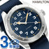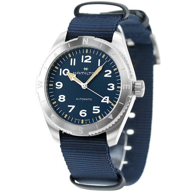 3年保証キャンペーン ハミルトン カーキ フィールド エクスペディション オート 41mm メンズ 腕時計 H70315940 HAMILTON Khaki Field Expedition Auto アナログ ブルー ネイビー ◆HAMILTON(ハミルトン)はアメリカ発祥の老舗ブランドです。創業翌年に誕生した懐中時計「ブロードウェイ・リミテッド」は、他の時計よりも正確に時を刻むことから鉄道用時計として採用されました。その後も航空用時計や軍用時計として採用されるなど、品質の高さと流行にながされない独自のデザインが世界中の人々に支持されています。 どんな場所にも適応するアドベンチャーウォッチ。コンパスのデザインが、太陽が頼りとなる次の旅で進むべき道を示してくれます。41mmのステンレススチール製ケースと、ブルーテキスタイルを使用したNATOストラップ、さらにねじ込み式リューズや、サンドブラスト加工が施されたブルーダイヤルを備え、最もタフなタイムピースに仕上がっています。