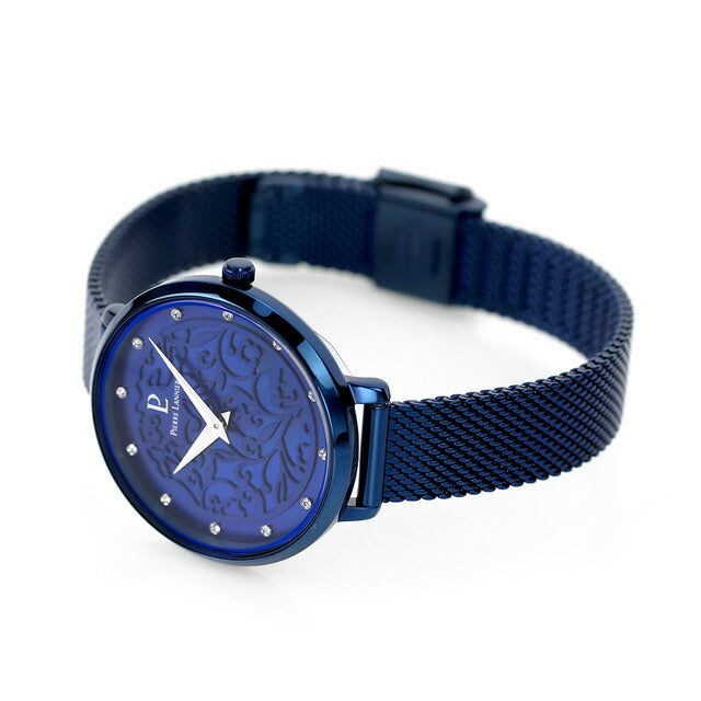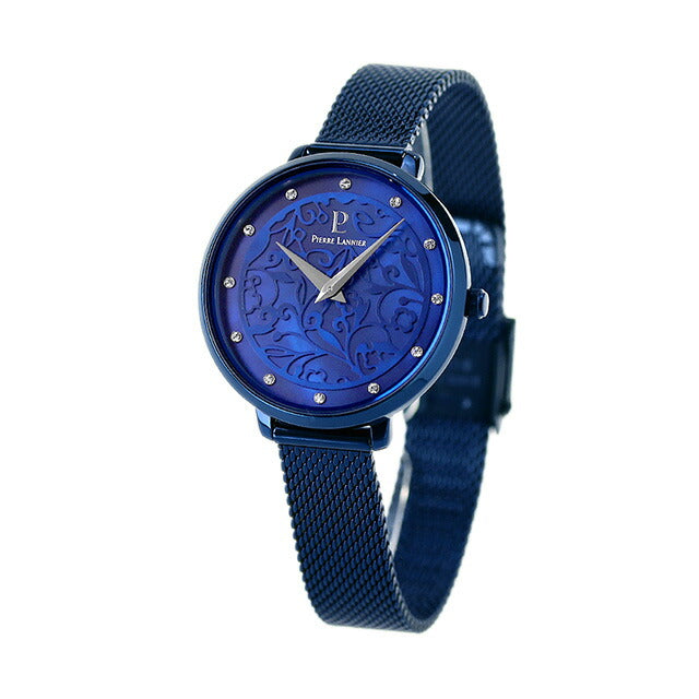正規品 ピエールラニエ エオリア フランス製 クオーツ レディース 腕時計 P045L968 Pierre Lannier EOLIA アナログ ブルー ネイビー ◆ピエール・ラニエ社は、1977年にフランス、ストラスブルグ市近郊に創設されました。「常に時代の最先端を駆けるファッション性の高い時計作り」をコンセプトに、多くのファンを魅了しています。 レースのようなカッティングが目を惹く文字盤のエオリア。人気のエオリアコレクションに白蝶貝モデルが登場。ブルーが印象的で手元のアクセントになります。インデックスにはさり気なく石をあしらい、ジュエリーのような煌き。着けるだけで女性らしい手元が演出できます。何気ない日常に華を添える、そんな時計に仕上げました。これ1本であなたの手元を華やかに彩ります。