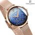正規品 ピエールラニエ プティ クリスタル 30mmフランス製 クオーツ レディース 腕時計 P108G968 Pierre Lannier PETITE CRYSTAL アナログ ラウンド ネイビーグラデーション×ピンクゴールド ◆ピエール・ラニエ社は、1977年にフランス、ストラスブルグ市近郊に創設されました。「常に時代の最先端を駆けるファッション性の高い時計作り」をコンセプトに、多くのファンを魅了しています。 を文字盤にちりばめたルナクリスタルシリーズに、女性の手元になじむプティサイズが登場。グラデーションカラーとで手元の存在感は抜群。きらりと光る可憐な手元を演出します。スライド式のベルトは、ご自分でのベルト調節が可能です。また、ベルト裏面のつまみのついたバネ棒をスライドさせるだけの操作でバンドの取り外し、取り付けが簡単に行えます。気分や服装にあわせてお手持ちのベルトと付け替え、お楽しみいただけます。