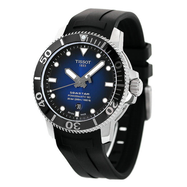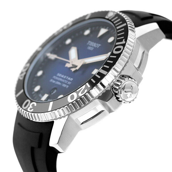 ティソ T-スポーツ シースター 1000 オートマティック 80 45mm ダイバーズウォッチ 自動巻き スイス製 メンズ 腕時計 T1204071704100 TISSOT T-SPORT SEASTAR 1000 AUTOMATIC 80 アナログ ブルー×ブラック ◆ティソ(TISSOT)は、創業160年を超える老舗の時計ブランドです。自社のロゴに、スイスの国旗“+”を掲げることを許された数少ないブランドの一つでもあります。世界160カ国に発信される時計は、高い機能性と美しいデザイン、そして特別な素材を組み合わせ、高い精度と明快なスタイルを兼ね備えています。 300mの防水性能を実現し、セラミック製逆回転防止べゼルや、蓄光の針とインデックスなど、ダイバーズウォッチとして水中の冒険に必要とされる機能を網羅。最大80時間駆動のムーブメントも搭載しています。マリンスポーツはもちろん、シティスタイルに溶け込むエレガントなデザインを融合させた時計です。 機械式腕時計 ※未使用・未着用の新品ですが、 キズ があるためアウトレット価格にてご提供させて頂きます。