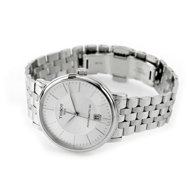 3年保証キャンペーン ティソ カーソン プレミアム パワーマティック 80 スイス製 メンズ 腕時計 T122.407.11.031.00 TISSOT Carson Premium Powermatic 80 アナログ シルバー ◆ティソ(TISSOT)は、創業160年を超える老舗の時計ブランドです。自社のロゴに、スイスの国旗“+”を掲げることを許された数少ないブランドの一つでもあります。世界160カ国に発信される時計は、高い機能性と美しいデザイン、そして特別な素材を組み合わせ、高い精度と明快なスタイルを兼ね備えています。 Tissot Carson Premium Automatic「ティソ カーソン プレミアム オートマティック」は普遍的なクラシックスタイルに優雅なダイアルデザインでどんなシーンでも使やすい1本です。腕元を彩る5連ブレスレットは時を告げる繊細なリーフ針とのバランスも良く、着用しやすいサイズ感。また最長80時間ロングパワーリザーブのPowermatic 80「パワーマティック 80」ムーブメントはデイリーに使いやすい機能性を提供します。