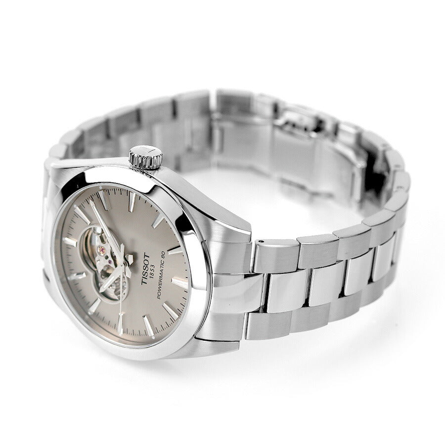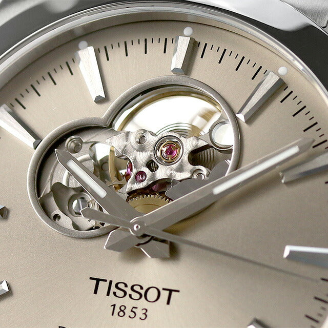3年保証キャンペーン ティソ ジェントルマン オートマティック オープンハート スイス製 自動巻き メンズ 腕時計 T127.407.11.081.00 TISSOT T-クラシック アナログ シルバーゴールド ◆ティソ(TISSOT)は、創業160年を超える老舗の時計ブランドです。自社のロゴに、スイスの国旗“+”を掲げることを許された数少ないブランドの一つでもあります。世界160カ国に発信される時計は、高い機能性と美しいデザイン、そして特別な素材を組み合わせ、高い精度と明快なスタイルを兼ね備えています。 ティソ ジェントルマン パワーマティック オープンハートは、新しくコンテンポラリーなオープンハートのデザインを採用したエレガントなウォッチです。力強いカーブを描く角は、時計と調和し、手首に心地よくフィットします。この目を引くデザインは、スイスの時計製造の伝統の象徴であり、その下にあるムーブメントの美しさによって、ティソの伝統を視覚的に強く印象づけるものとなっています。 機械式腕時計