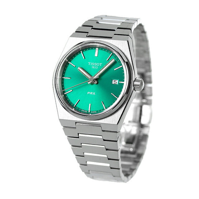 3年保証キャンペーン ティソ T-クラシック ピーアールエックス スイス製 クオーツ ユニセックス メンズ レディース 腕時計 T1372101108100 TISSOT T-CLASSIC PRX アナログ グリーン ◆ティソ(TISSOT)は、創業160年を超える老舗の時計ブランドです。自社のロゴに、スイスの国旗“+”を掲げることを許された数少ないブランドの一つでもあります。世界160カ国に発信される時計は、高い機能性と美しいデザイン、そして特別な素材を組み合わせ、高い精度と明快なスタイルを兼ね備えています。 PRX[ピーアールエックス]は、1978年のオリジナルモデルを再解釈し、より洗練され、より高精度にアップデートしたコレクション。テーパードでスリムなケース、ソリッドで人間工学に基づいたステンレススチール製のブレスレットは、PRXを過去からのアイコンとして、また現代人のあらゆる年齢層に向けたモダンな洗練されたアイテムに仕上げています。1978年に発売されたオリジナルモデルと同じ35mmというサイズも魅力的です。