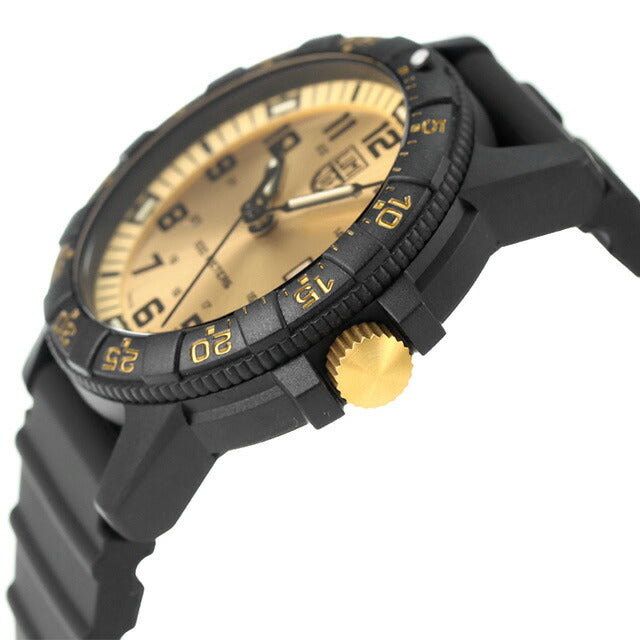 7年保証キャンペーン ルミノックス スイス製 メンズ 腕時計 0325.GP ルミノックス LEATHERBACK SEA TURTLE GIANT 0320 SERIES ゴールド ブラック 黒 ラバー ◆LUMINOX(ルミノックス)は1989年に創業。高性能なスポーツラインを展開しており、ラテン語で「明るい夜」を意味するブランド名を掲げているように、最先端の発光と視認性の良さを特徴としています。極限の状況下で行われるミッションで必要となる視認性を確保しているルミノックス時計は、特殊軍用時計として絶対的な信頼感を得ています。 デザインがウミガメに似ている事からシータートルと名付けられたLEATHERBACK SEA TURTLE GIANT 0320 SERIES。世界限定モデルに用いられて大きな反響を呼んだゴールドを配色。ルミノックスが創設当初から従来から最重要視していた昼夜を問わない視認性の確保を実現しており、新たなモデルの登場によってさらに幅広いシーンで活躍し続けていきます。