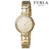 正規品 フルラ 3D バングル レディース 腕時計 WW00049003L2 FURLA 3D BANGLE アナログ ゴールド ◆FURLA(フルラ)は、1927年にイタリア・ボローニャでアルド・フルラネットにより創立されました。カラフル、ジョイフル、コンテンポラリーなイタリアのライフスタイルを、バッグやアクセサリーなどのアイテムへ投影させています。伝統的なクラフトマンシップ、熟練したアルチザンの持つ専門知識、そして革新的なデザインを礎に、2017年に創業90周年を迎えました。素晴らしい品質基準は、今や世界中から定評を得ています。 ブランド名を落とし込んだベルトデザインが特徴のモデル。12時位置にアーチロゴをさりげなく配置。華やかなカラーとデザインで大人の魅力を演出します。年代問わずお使いいただけ、自分へのご褒美や誕生日、記念日などのプレゼントにもおすすめです。