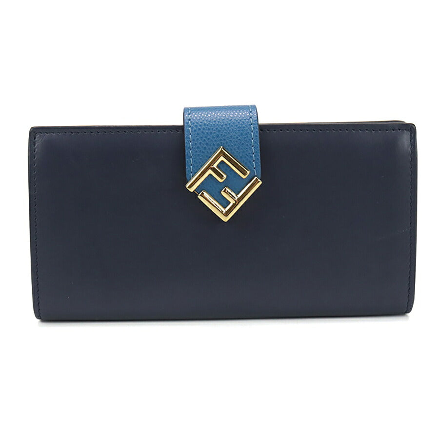 中古 フェンディ 長財布ニ折小銭入付き レディース ブランド FENDI FFダイヤモンド コンチネンタルウォレット レザー 8M0492 ネイビー 財布 USDFE96364011