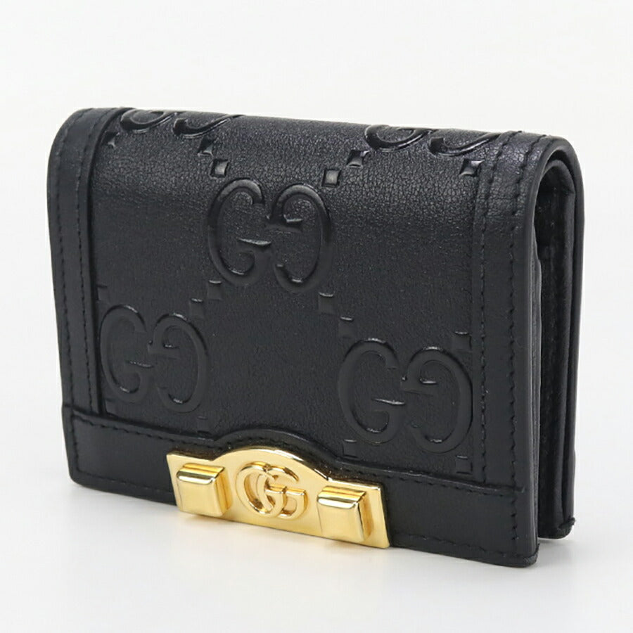 中古 グッチ 二折財布小銭入付き レディース ブランド GUCCI GGエンボス カードケース ウォレット レザー 676150 ブラック 財布 USDGU94996011