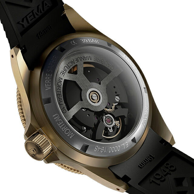 正規品 イエマ スーパーマン ブロンズ CMM.10 リミテッドエディション フランス製 メンズ 腕時計 11.13.36.ZN.U6 YEMA SUPERMAN BRONZE CMM.10 BLACK LIMITED EDITION アナログ ブラック 黒 ◆YEMA(イエマ)は、1948年以来のフランスの歴史的なブランドです。YEMAワークショップは、スイス国境沿いのジュラ山塊のオードゥーにあり、フランスの小さな町モルトーを拠点としています。歴史的および地理的要素により、フランスの時計製造会社YEMAは独自の「メゾン」機械式ムーブメントを設計することができました。 イエマが開発に3年を費やしたモダンな設計の新しい3針マニュファクチュールキャリバーは、クロノメトリック精度、パワーリザーブ70時間そして磁場や衝撃に対して高い耐性を装備しています。プロフェッショナルのダイバー用にデザインされた新しいブロンズケースは、使用状況や様々な気象条件下での露出度に応じて経年変化し、異なるパティナを形成していきます。1970年代の初頭に一時的に採用されたアイコニックなやや特大サイズのスーパーマン"ロリポップ"スィープ針が50年以上の時を経て初めてのブロンズヴァージョンとしてよみがえりました。 発売日:2024年9月発売 機械式腕時計