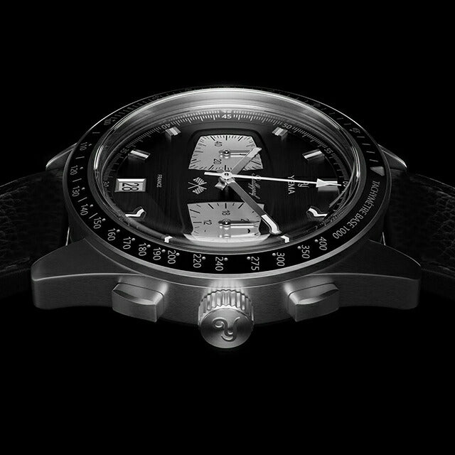 正規品 イエマ ラリーグラフ メカクォーツ II リバースパンダ クロノグラフ フランス製 メンズ 腕時計 YMHF1584-AA YEMA Rallygraf Meca-Quartz II Reverse Panda アナログ ブラック 黒 ◆YEMA(イエマ)は、1948年以来のフランスの歴史的なブランドです。YEMAワークショップは、スイス国境沿いのジュラ山塊のオードゥーにあり、フランスの小さな町モルトーを拠点としています。歴史的および地理的要素により、フランスの時計製造会社YEMAは独自の「メゾン」機械式ムーブメントを設計することができました。 このエディションは、マリオ・アンドレッティなどの伝説の選手が着用した YEMAの伝説的なモータースポーツクロノグラフを現代風にアレンジしたものです。完全に再設計されたスチールケース、ブロックプッシャー、ビンテージレースカーのダッシュボードを彷彿とさせるテクスチャ ダイヤルが特徴です。日付、時間、クロノグラフ機能は、セイコーのVK64ハイブリッド キャリバーによって駆動されます。