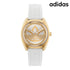 アディダス メンズ レディース 腕時計 AOFH23012 adidas Edition One アナログ ゴールド シルバー ホワイト 白 ◆スポーツ用品メーカーとしても知られる有名なブランドadidasより2001年、ストリートスポーツウエアブランド「adidas Originals (アディダス オリジナルス)」がスタート。1972年から1996年までadidas社のカンパニーロゴだったトレフォイルロゴ(三つ葉のロゴ)をシンボルマークとし、アスリートのために開発された復刻商品から、現在のトレンドを反映させた新作モデルやコラボレーション商品まで、幅広いアイテムを展開しています。 ブランドロゴが中央に大きく配置された文字盤が特徴のモデル。スポーティなデザインで、ファッションのアクセントにお使いいただけます。