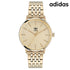 アディダス メンズ 腕時計 AOSY22024 adidas CODE ONE アナログ ゴールド ◆スポーツ用品メーカーとしても知られる有名なブランドadidasより2001年、ストリートスポーツウエアブランド「adidas Originals (アディダス オリジナルス)」がスタート。1972年から1996年までadidas社のカンパニーロゴだったトレフォイルロゴ(三つ葉のロゴ)をシンボルマークとし、アスリートのために開発された復刻商品から、現在のトレンドを反映させた新作モデルやコラボレーション商品まで、幅広いアイテムを展開しています。 時代を超えて愛されるラウンドシェイプにシンプルなデザインのコード ワン。立体のアプライドマーカーを配したダイヤルは時刻を読み取りやすく、デイリーな使いやすさに考慮したオールマイティな1本です。