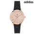 アディダス レディース 腕時計 AOSY22070 adidas CODE ONE アナログ ローズゴールド ブラック 黒 ◆スポーツ用品メーカーとしても知られる有名なブランドadidasより2001年、ストリートスポーツウエアブランド「adidas Originals (アディダス オリジナルス)」がスタート。1972年から1996年までadidas社のカンパニーロゴだったトレフォイルロゴ(三つ葉のロゴ)をシンボルマークとし、アスリートのために開発された復刻商品から、現在のトレンドを反映させた新作モデルやコラボレーション商品まで、幅広いアイテムを展開しています。 時代を超えて愛されるラウンドシェイプにシンプルなデザインのコード ワン。立体のアプライドマーカーを配したダイヤルは時刻を読み取りやすく、デイリーな使いやすさに考慮したオールマイティな1本です。
