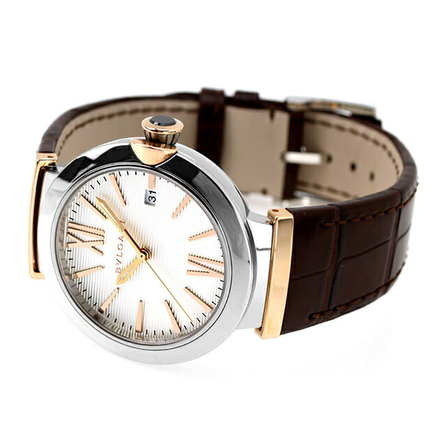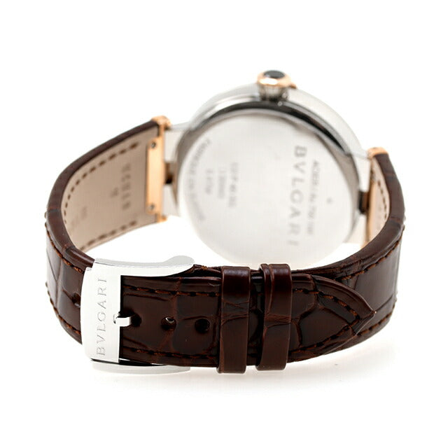 3年保証キャンペーン ブルガリ ルチェア スイス製 自動巻き メンズ 腕時計 LU40C6SSPGLD BVLGARI LVCEA アナログ シルバー ブラウン ◆世界中から愛される代表的なブランド「BVLGARI(ブルガリ)」。1884年、ソティリオ・ブルガリが、ローマにジュエリー店を開いたのが始まりです。1970年代には世界へ大きく進出し、大胆かつ革新的なスタイルは多くの人々の心を掴みました。 12・6時のローマ数字&足の長いバーインデックスを備えた横縞ギョーシェ模様ダイヤルにもクラシックな気品を香らせてオンオフ活躍します。中でもピンクゴールドの指針とインデックスをスッキリ備えたシルバーダイヤルも魅力。漆黒セラミックが中央に配された18Kリューズやブラウンアリゲーターベルトにも高級感をまとわせてエレガントな手元をつくります。T-シャツなどのカジュアルスタイルからジャケットやスーツにもあわせていただけます。 機械式腕時計