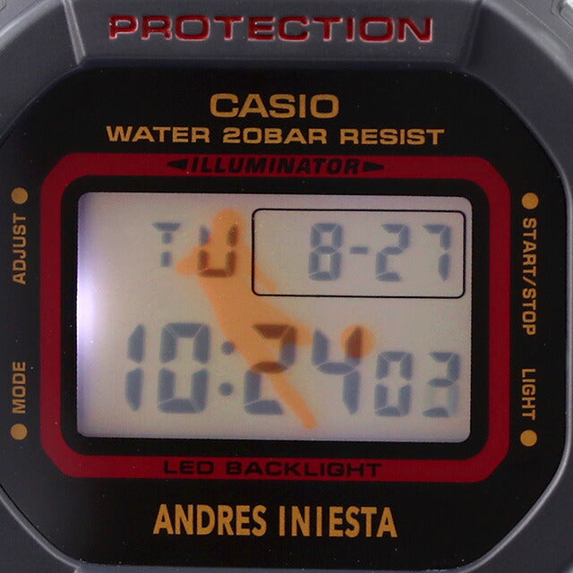 7年保証キャンペーン gショック ジーショック CASIO G-SHOCK イニエスタシグネチャーモデル デジタル 5600シリーズ クオーツ メンズ 腕時計 DW-5600AI-1DR ANDRES INIESTA DIGITAL 5600 SERIES デジタル ブラック ◆1983年の発売からあくなき強さを求めて進化を続けるタフネスウオッチG-SHOCKから、世界的なプロサッカー選手、アンドレス・イニエスタ選手のシグネチャーモデルです。ベースモデルにG-SHOCKを代表するDW-5600を採用。ベースカラーのブラックにイメージカラーであるレッドを随所にあしらい、バンドにはイニエスタ選手を象徴するワード、‘’Master the game‘’の直筆をプリント。遊環にはオリジナルのロゴ、バックライトにはイニエスタ選手のシルエットが浮かび上がる仕様にしました。また、8時側のサイドボタンには背番号8をレーザー刻印し、ディテールを随所に取り込みました。ファン待望の特別な1本をスペシャルパッケージでお届けします。 国内モデル品番:DW-5600AI-1JR