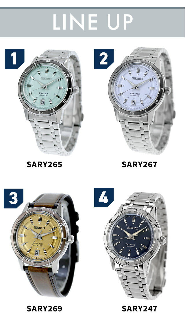 真正的产品,7年的保修活动,免费送货,精工预售,在日本制造,男士手表,Seiko Presage Style60,模拟,冰绿色,银色紫罗兰色,金黄色,海军,海军选择◆基于“及时的颜色调色板”的主题,该模型的主题是1960年代出生的,现已提供。专注于本世纪中叶鼎盛时期出生的开放式和标志性的色彩,并在整个时代都受到喜爱。我们开发了一种凹形的成型设计,使我们想起了1960年代的无产品设计,以及带有圆形顶形状的铝制显示板。从休闲到业务,可以在任何情况下使用它。也建议将其作为生日或周年礼物。发布日期:2025年5月Sary265 Sary267 Sary269 Sary247机械手表