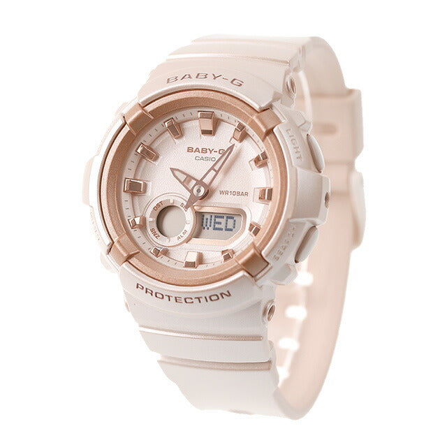 7年保証キャンペーン カシオ ベビーG BGA-280シリーズ クオーツ レディース 腕時計 BGA-280BA-4ADR CASIO Baby-G BGA-280 SERIES アナデジ ピンクゴールド ◆アクティブな女性のためのカジュアルウオッチBABY-G。 ベーシックスタイルと相性の良いカラーのモデルです。ベースモデルは丸みのあるシルエットとパーツを重ねた多層構造ケースが特徴のBGA-280を採用。カラーは幅広いファッションに取り入れやすいくすみ系のピンクベージュにパール塗装を施し、光沢感のある印象に。ベゼルリングのメタリック仕上げとダイアルのインデックスの蒸着仕上げで、華やかさをプラスしています。機能面では、耐衝撃構造や10気圧防水機能など日常生活で頼れる機能を備えています。プレゼントにもおすすめです。 国内モデル品番:BGA-280BA-4AJF