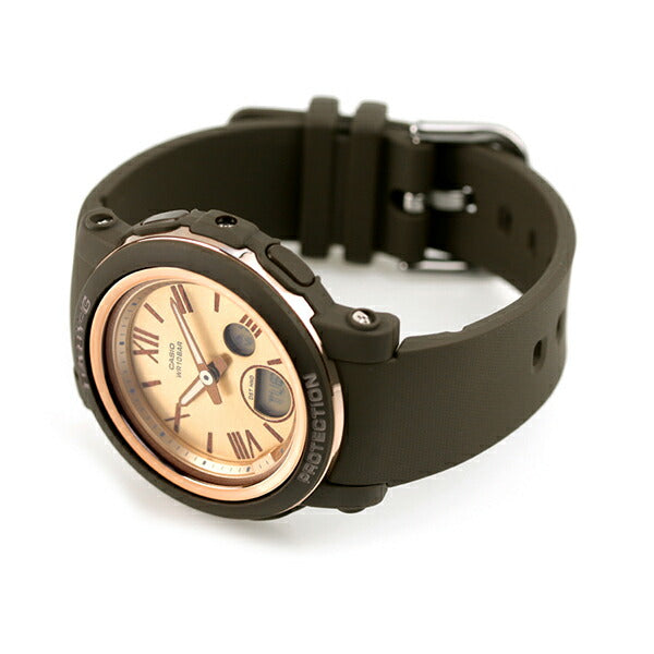 7年保証キャンペーン カシオ ベビーG BGA-290シリーズ ワールドタイム クオーツ レディース 腕時計 BGA-290-5ADR CASIO Baby-G BGA-290 Series アナデジ ピンクゴールド×ブラウン ◆シンプルなラウンドケースに、視認性の良いワイドフェイスのBGA-290。BABY-Gの耐衝撃性はそのままに、軽くスリムなデザインに仕上げました。ベースカラーには上品で落ち着いたブラウンをセレクトしました。文字板にはローマンインデックスを配置し、エレガントな雰囲気に。針やインデックスのカラーは華やかな印象のピンクゴールドを採用。ベゼルリングには蒸着処理を施し、メタリック感が美しい質感に仕上げました。また、バンドにはテクスチャーを施しております。機能面では耐衝撃構造や10気圧防水搭載で実用性も兼備しています。どんなコーデにも相性がよく、軽くて快適な装着感のBABY-Gです。 国内モデル品番:BGA-290-5AJF