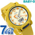 7年保証キャンペーン ベビーg ベビージー CASIO Baby-G クオーツ レディース 腕時計 BGA-310RP-9ADR BGA-310 Series アナデジ クリーム イエロー ◆アクティブな女性のためのカジュアルウオッチBABY-Gからレトロポップなカラーを纏ったアウトドアをテーマにしたウオッチです。ワイドフェイスの文字板に、大型の針と立体インデックスをレイアウトし、見やすさにもこだわりました。 時針は、キャンプの必需品であるランタンをモチーフにした遊び心あるデザインに。一部に暗い場所でも見やすい蓄光を施しています。ラグ部分の可動域が広く、腕なじみがよいのも特長です。ベゼルとバンドにバイオマスプラスチックを採用し、自然環境への配慮を形にしました。機能面では耐衝撃構造や10気圧防水はもちろん、キャンプなどでの使用を想定し、ライト専用ボタンを備えました。2つのLEDライトが文字板と液晶を明るく照らします。暗い場所で腕を傾けると自動でライトが点灯する、オートライト機能も備えています。 国内モデル品番:BGA-310RP-9AJF
