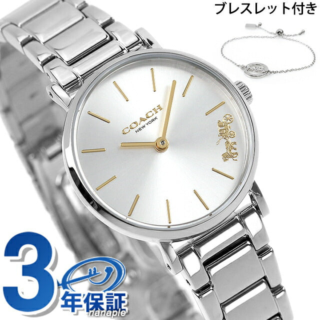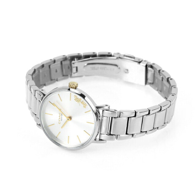 3年保証キャンペーン コーチ ペリー プレスレット付き クオーツ レディース 腕時計 14000064 COACH PERRY アナログ シルバー ◆コーチは1941年にマンハッタンの小さなロフトで皮革製品の家内工業として始まりました。今日では世界中で絶大な人気を誇るファッションブランドです。男女問わず多岐にわたるシックで機能的なアクセサリーにきめ細かな最高品質の素材を用いて、現代的なアメリカンスタイルを取り入れた身近な高級品という新しい定義を形成しています。コーチブランドの柄、色、詳細な金具を取り入れたコーチウォッチは、最新のコーチバッグやデザインコレクションと新鮮でファッショナブルにマッチすると共に、精密なクオーツを備えてます。 ニューヨークシティのウェストヴィレッジの静かな通りの名前にちなんだペリー。伝統的なラウンド型のウォッチで、日常使いにぴったりです。ブレスレット付きで気分や装いに合わせて付け方をアレンジ可能。プレゼントにもオススメです。