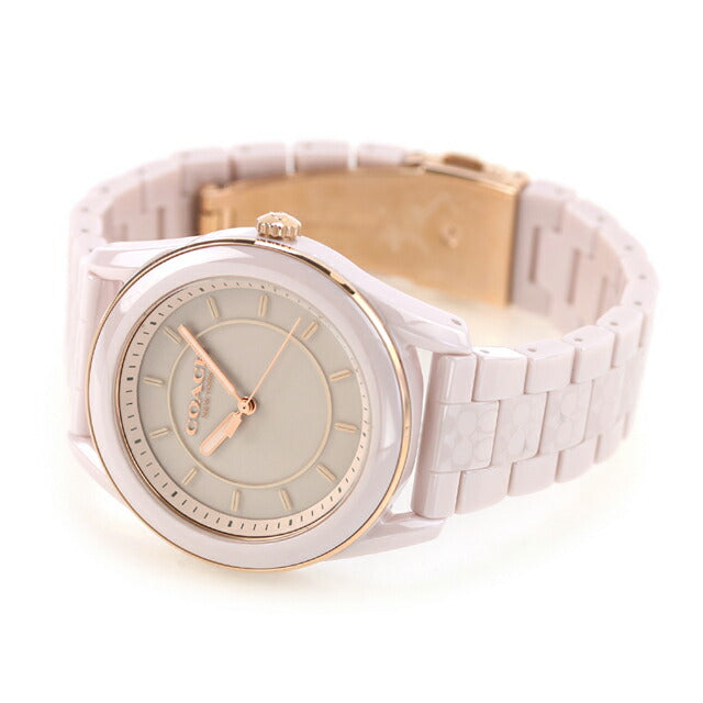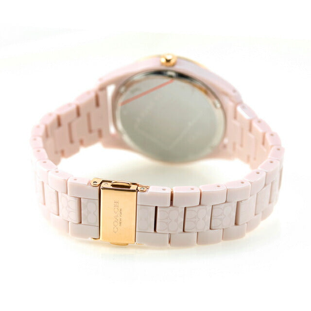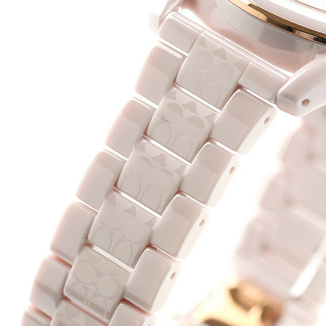 3年保証キャンペーン コーチ レディース 腕時計 14503772 COACH PRESTON アナログ ピンク ◆コーチは1941年にマンハッタンの小さなロフトで皮革製品の家内工業として始まりました。今日では世界中で絶大な人気を誇るファッションブランドです。男女問わず多岐にわたるシックで機能的なアクセサリーにきめ細かな最高品質の素材を用いて、現代的なアメリカンスタイルを取り入れた身近な高級品という新しい定義を形成しています。毎日をエレガントに彩る「PRESTON」。カーネーションゴールドトーンのアクセントが映えるブラッシュセラミックデザインに、コーチのシグネチャーが刻まれたブレスレットが上品さを引き立てます。 大切な方へのプレゼントはもちろん、自分へのご褒美にもおススメです。