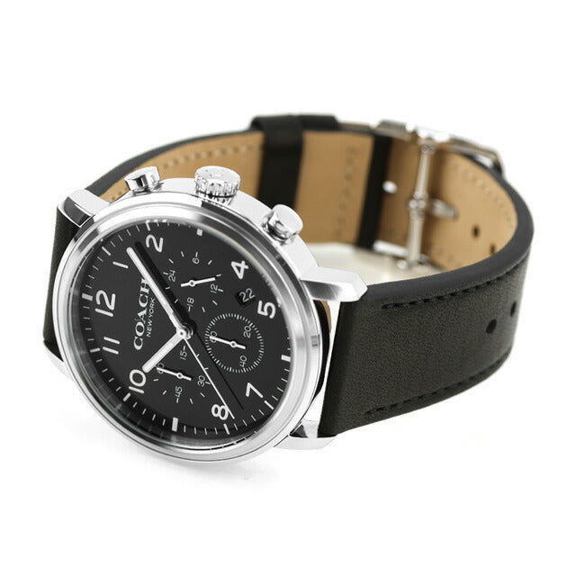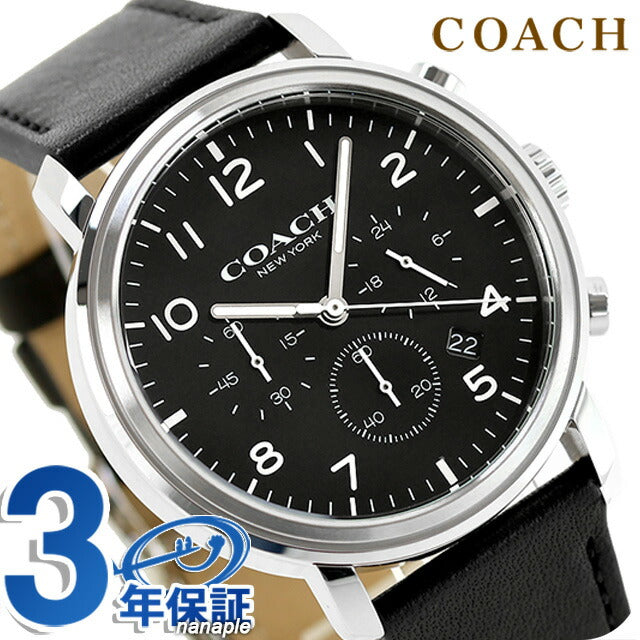 3年保証キャンペーン コーチ ハリソン クロノグラフ メンズ 腕時計 14602539 COACH HARRISON アナログ ブラック 黒 ◆コーチは1941年にマンハッタンの小さなロフトで皮革製品の家内工業として始まりました。今日では世界中で絶大な人気を誇るファッションブランドです。男女問わず多岐にわたるシックで機能的なアクセサリーにきめ細かな最高品質の素材を用いて、現代的なアメリカンスタイルを取り入れた身近な高級品という新しい定義を形成しています。コーチブランドの柄、色、詳細な金具を取り入れたコーチウォッチは、最新のコーチバッグやデザインコレクションと新鮮でファッショナブルにマッチすると共に、精密なクオーツを備えてます。 クロノグラフと日付表示を搭載したモデル。カジュアルからビジネスまでシーンを問わずお使いいただけます。