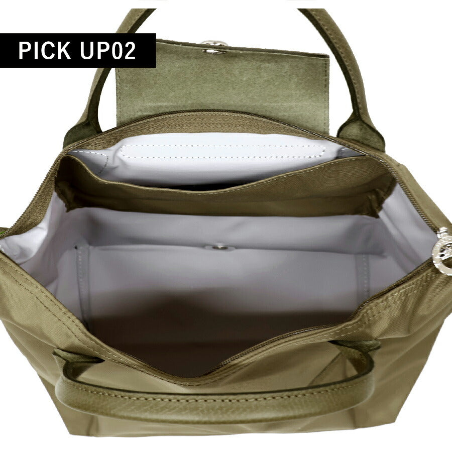 ロンシャン トートバッグ レディース ブランド プリアージュ グリーン S トップハンドルバッグ バッグ 折り畳み 軽量 サステナブル L1621919M04 LONGCHAMP アーティチョーク ◆LONGCHAMP(ロンシャン)は、1948年にフランス・パリで創業されたラグジュアリーブランドです。レザーに関するサヴォワールフェールをメゾンの核としたレザーアイテムを扱うブランドです。 「ル プリアージュ グリーン」は再生素材を採用したサステナブルなラインです。ボディをナイロンからリサイクルナイロンに切り替えただけではなく、パーツにも再生素材を採用することで、環境への負荷をより軽減し、製作時の二酸化炭素排出量で換算するとジーンズ1本分の1/6まで抑えています。折りたたむことができ、軽量で使いまわしの効くオリジナルデザインで、通勤や通学、マザーズバッグとしても活躍します。