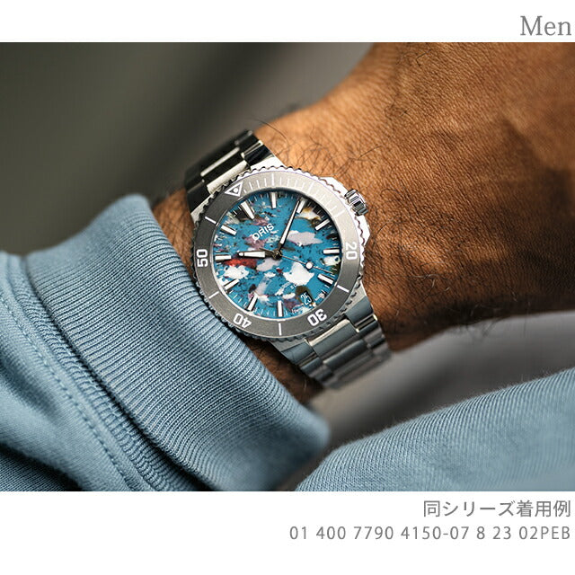 正規品 7年保証キャンペーン オリス アクイス デイト アップサイクル キャリバー400 43.5mm スイス製 メンズ 腕時計 01 400 7790 4150-07 8 23 02PEB ORIS Aquis Date Upcycle Cal.400 アナログ マルチカラー ◆ORIS(オリス)は、ポール・カッティン氏とジョージ・クリスチャン氏の2人によってスイスのヘルシュタインで創設されました。近くを流れる小川にちなんで社名をオリスと命名。手頃な価格ながら、革新的で高機能かつ実用的な機能を備えた本格機械式時計で知られ、世界中の時計ファンから愛されているブランドです。 オリスの人気ツールウォッチに、リサイクルPET製の文字盤をセットしました。ふたつと同じ文字盤はありません。芸術的な美しさをもつ、より良い変化のためのシンボルです。キャリバー400は、5日間パワーリザーブと耐磁性を備えた進歩的なムーブメントです。クラシックな大人の装いに味わいを添えてくれます。 ※製造工程中に発生するランダム・パターンにより、デザイン等に個体差があり、写真のイメージと異なる場合がございます。予めご了承のうえお買い求めくださいませ。 発売日:2024年4月発売 機械式腕時計