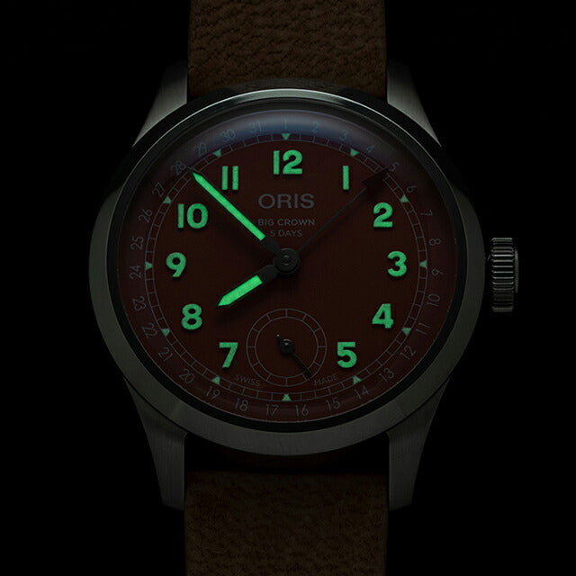 正規品 7年保証キャンペーン オリス ビッククラウン ポインターデイト 40mm スイス製 メンズ 腕時計 01 403 7799 4068-07 6 20 11FC ORIS Big Crown Pointer Date アナログ レッド 赤 ◆ORIS(オリス)は、ポール・カッティン氏とジョージ・クリスチャン氏の2人によってスイスのヘルシュタインで創設されました。近くを流れる小川にちなんで社名をオリスと命名。手頃な価格ながら、革新的で高機能かつ実用的な機能を備えた本格機械式時計で知られ、世界中の時計ファンから愛されているブランドです。 オリスと航空を結びつけたビッククラウンは、1938年誕生以来パイロットウォッチの原型になったコレクション。Calibre 403を搭載。温かみのあるテラコッタダイヤルを備えた ビッククラウンポインターデイト、このアイコニックなモデルが生まれ変わりました。サステナブルなディアレザーストラップを採用しています。 機械式腕時計