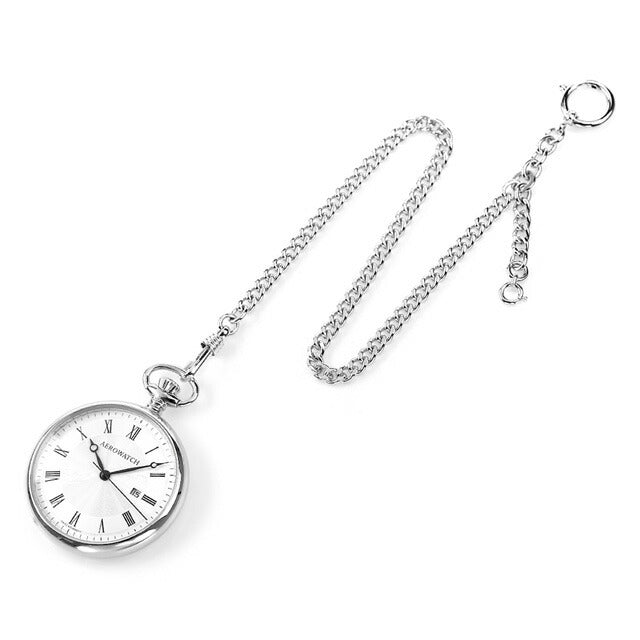 正規品 アエロウォッチ スイス製 クオーツ 懐中時計 45828-PD01 AEROWATCH アナログ ホワイト 白 ◆AEROWATCH(アエロウォッチ)は、代々一流の時計職人であったクレヴァジェ家の時術と伝統を引き継いだマキシム・クレヴァジェ氏によって1910年スイスのニューシャテル市に設立。1959年には世界最大の時計と宝飾の見本市であるバーゼルフェアへも参加し、本格的な腕時計メーカーの仲間入りを果たしています。現在は、スイスでは数少ない高級ポケットウォッチの専門メーカーとして活躍。歴史と伝統に裏づけされた確かな技術と、魅力的なデザインが融合して生み出されたコレクションは、近年さらに世界の時計愛好家の注目を集めています。 先端が月を思わせる斬新なデザインの針が特徴で上品な「ブレゲ針」を使用。デザイン性が高く手巻きしを愉しむことができる懐中時計。