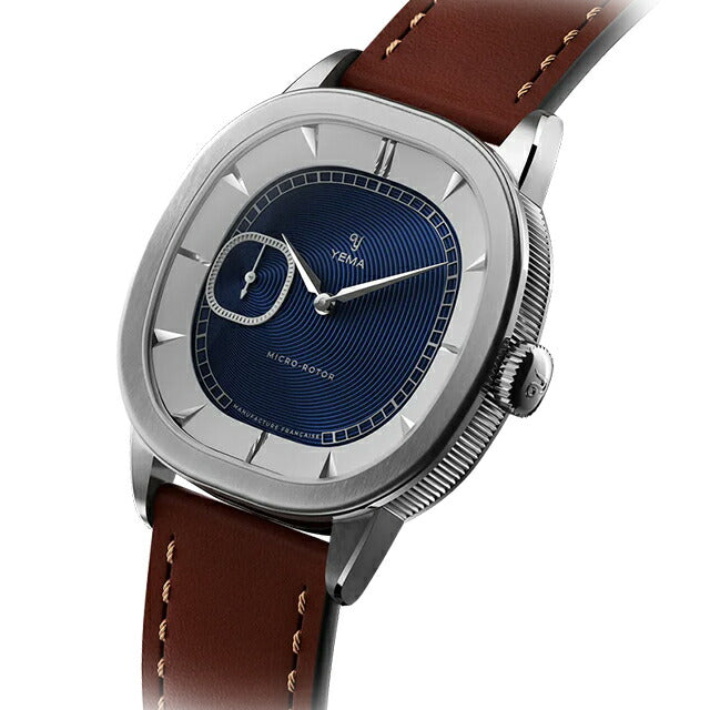 正規品 イエマ グランヴェル CMM.20 フランス製 メンズ 腕時計 70.25.29.05.SN.L8 YEMA Granvelle アナログ ブルー ブラウン ◆YEMA(イエマ)は、1948年以来のフランスの歴史的なブランドです。YEMAワークショップは、スイス国境沿いのジュラ山塊のオードゥーにあり、フランスの小さな町モルトーを拠点としています。歴史的および地理的要素により、フランスの時計製造会社YEMAは独自の「メゾン」機械式ムーブメントを設計することができました。 スモールセコンドのサブダイヤルは、文字盤に洗練されたヴィンテージ風の印象を与えます。伝統的な時計作りへのオマージュともいえるこのクラシックな複雑機構は、高い視認性を提供しつつ、時の流れを繊細かつエレガントに刻む--時代を超えたデザインと機械式時計の精密さを愛する人に理想的なデザインです。文字盤はまるで額縁に収められた芸術作品のよう。それは芸術を鑑賞するように時計が時を刻むのを眺める、今までにない新しい経験です。 機械式腕時計