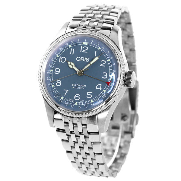 正規品 7年保証キャンペーン オリス ビッグクラウン ポインターデイト 40mm スイス製 自動巻き メンズ 腕時計 754-7741-4065M ORIS BIG CROWN アナログ ブルー ◆ORIS(オリス)は、ポール・カッティン氏とジョージ・クリスチャン氏の2人によってスイスのヘルシュタインで創設されました。近くを流れる小川にちなんで社名をオリスと命名。手頃な価格ながら、革新的で高機能かつ実用的な機能を備えた本格機械式時計で知られ、世界中の時計ファンから愛されているブランドです。 オリスと航空を結びつけたビッククラウンは、1938年誕生以来パイロットウォッチの原型になったコレクション。時代を超越したオリジナルモデルへの忠実なオマージュです。パイロットがグローブを着けたまま操作できる大型リューズ(クラウン)とセンター針で日付を示す特殊なコンプリケーションを備えた、先駆的な時計です。カジュアルスタイルにはもちろん、クラシックな大人の装いにも味わいを添えてくれます。 機械式腕時計