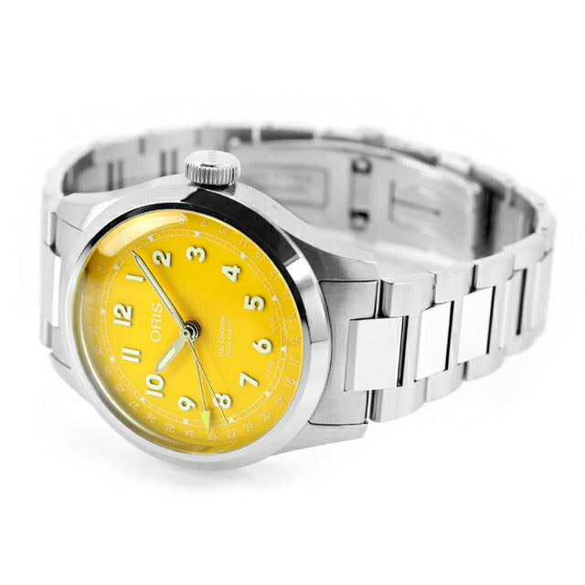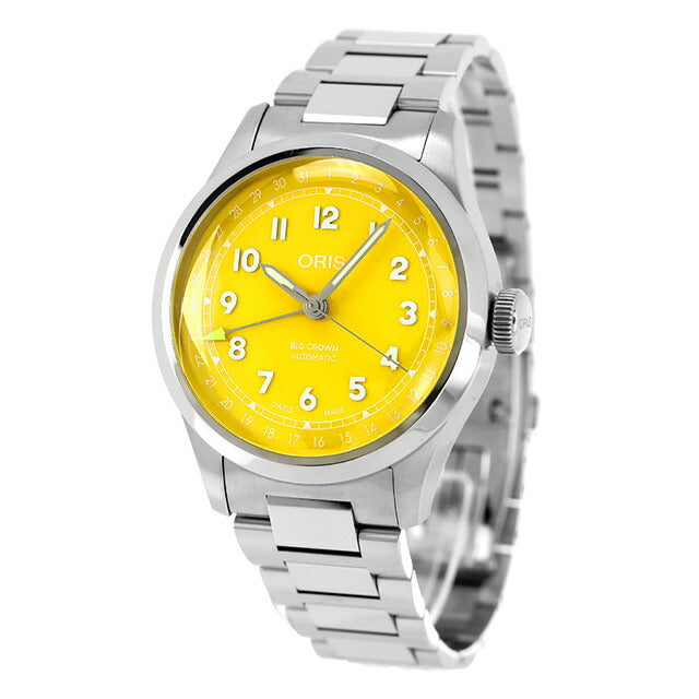 正規品 7年保証キャンペーン オリス ビッククラウン ポインターデイト 40mm スイス製 メンズ 腕時計 01 754 7798 4069-07 8 20 06 ORIS Big Crown Pointer Date アナログ イエロー ◆ORIS(オリス)は、ポール・カッティン氏とジョージ・クリスチャン氏の2人によってスイスのヘルシュタインで創設されました。近くを流れる小川にちなんで社名をオリスと命名。手頃な価格ながら、革新的で高機能かつ実用的な機能を備えた本格機械式時計で知られ、世界中の時計ファンから愛されているブランドです。 オリスと航空を結びつけたビッククラウンは、1938年誕生以来パイロットウォッチの原型になったコレクション。時代を超越したオリジナルモデルへの忠実なオマージュです。鮮やかなイエローが特徴的なビッククラウンポインターデイトはまるで太陽のように心を晴れやかにしてくれます。プレゼントにもおすすめです。 機械式腕時計
