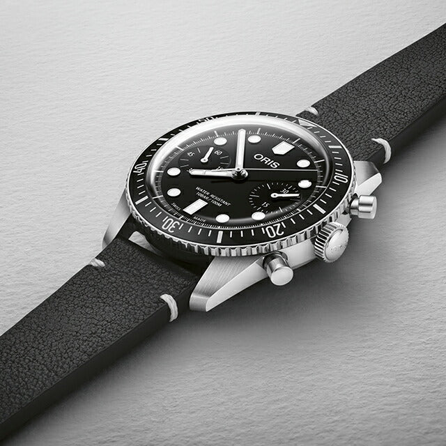 正規品 7年保証キャンペーン オリス ダイバーズ65 40mm クロノグラフ スイス製 メンズ 腕時計 01 771 7791 4054-07 6 20 01 ORIS Divers Sixty Five Chronograph アナログ ブラック 黒 ◆ORIS(オリス)は、ポール・カッティン氏とジョージ・クリスチャン氏の2人によってスイスのヘルシュタインで創設されました。近くを流れる小川にちなんで社名をオリスと命名。手頃な価格ながら、革新的で高機能かつ実用的な機能を備えた本格機械式時計で知られ、世界中の時計ファンから愛されているブランドです。 オリス初のダイバーズウォッチ「ダイバーズ65」シリーズ。1965年にプロダイバーや海軍に販売していたモデルが原型。当時のプレキシガラスを彷彿とさせる湾曲したガラスやヴィンテージ感溢れるブラックベゼルなど高い再現性を誇ります。レトロな雰囲気を醸す2つのクロノグラフボタンが魅力の個性的なモデルです。 発売日:2023年10月発売 機械式腕時計