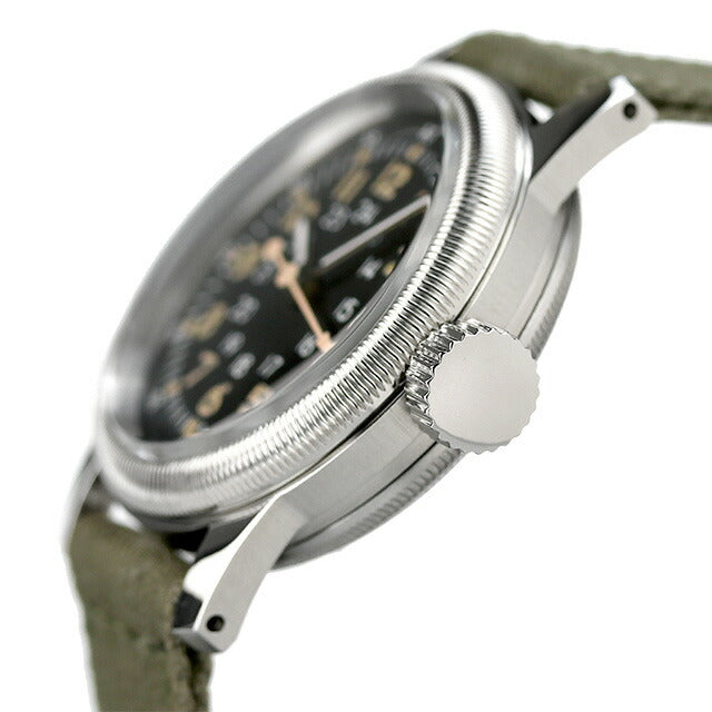 正規品 モントルロロイ ミリタリーウォッチ ヴィンテージ クオーツ メンズ 腕時計 A-17-VIN-FAB-GR M.R.M.W. TYPE A-17 VINTAGE アナログ ブラック カーキ 黒 ◆時計製作専門会社モントルロロイが、展開するミリタリーウオッチシリーズ。世界の名作ミリタリーウオッチを復刻。ミリタリーアイテムは普遍的でいつの時代も支持される、耐久性・使いやすさを追求した長年使える優れモノです。 24時間表示を兼ね備えた1950年代のミリタリーウォッチA-17米軍モデルを復刻。この時代になると航空機の発展により夜でも雨でも出撃可能な全天候型戦闘機が出現した為、この頃からパイロットウォッチの文字盤には24時間表示の必要が出てきました。1から12までのインデックス(時字)の内側には13時から24時が印刷されています。当時の蓄光のインデックスは経年劣化の為、オレンジがかった茶色に変色しています。また所々剥離が起こっています。これが程良いヴィンテージ感を引き出しており、再現に工夫を凝らしました。