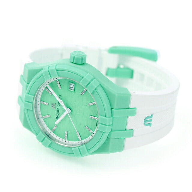 モーリスラクロア AIKON #tide 40mm スイス製 クオーツ メンズ 腕時計 AI2008-CCCC1-3A0-0 MAURICE LACROIX AIKON #tide アナログ ライトグリーン ホワイト 白 ラバー ◆MAURICE LACROIX(モーリス・ラクロア)は、1975年にウォッチブランドとしてスタートしました。デスコ・フォン・シュルテス社がモーリス・ラクロアのブランド名のもと、腕時計の製造を開始し、オーストリアで最初のモデルを発表しました。40年以上にわたり、スイス・セイネレジェに所有する最先端の工場で製造され、独創性、ならびに熟練した専門技術は業界内で高く評価され、数々の賞を受賞しました。 「アイコン #タイド」は、オーシャンバウンド・プラスチックと呼ばれる海へ流れ出る前に海辺などで回収されたプラスチックごみをアップサイクルしたプラスチックとグラスファイバーが組み合わされた素材を使用しています。アイコンらしいベゼルの“6つの爪”の意匠はそのままに「ジュラ山脈ウェーブ」と呼ばれる特徴的です。