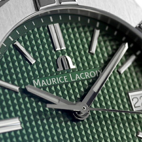 モーリスラクロア アイコン オートマティック 39mm スイス製 自動巻き メンズ 腕時計 AI6007-SS002-630-1 MAURICE LACROIX AIKON Automatic アナログ グリーン ◆MAURICE LACROIX(モーリス・ラクロア)は、1975年にウォッチブランドとしてスタートしました。デスコ・フォン・シュルテス社がモーリス・ラクロアのブランド名のもと、腕時計の製造を開始し、オーストリアで最初のモデルを発表しました。40年以上にわたり、スイス・セイネレジェに所有する最先端の工場で製造され、独創性、ならびに熟練した専門技術は業界内で高く評価され、数々の賞を受賞しました。 カリプソの復刻モデルとして登場したモーリス・ラクロアを代表する傑作モデル、アイコン。アイコンクォーツをよりアップデートしたアイコンオートマチック。文字盤には丁寧につくりこまれたクル・ド・パリの装飾が施されています。洗練されたシンプルなデザインはオンオフ問わずにお使い頂けます。 機械式腕時計