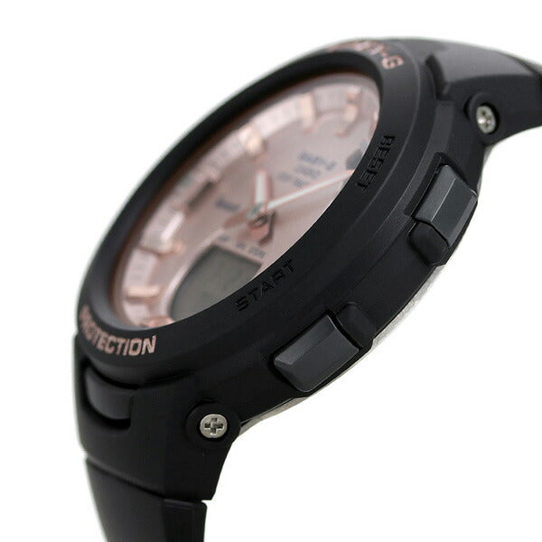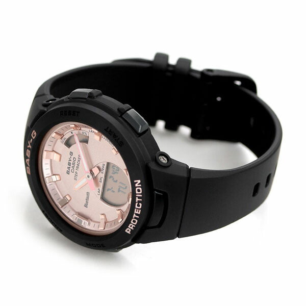 7年保証キャンペーン カシオ ベビーG ジースクワッド スマートフォンリンク モバイルリンク Bluetooth クオーツ CASIO Baby-G G-SQUAD レディース 腕時計 BSA-B100MF-1ADR アナデジ ピンクゴールド×ブラック ◆日常の運動やトレーニングを快適にサポートするスポーツライン「G-SQUAD(ジー・スクワッド)」から、フェイスにピンクゴールドを彩ったモデルの登場。アスレジャーウェアと相性も良く、スポーティデザインの中にも女性らしさをプラス。運動時の妨げにならないようケースを薄型化。暗所でのワークアウトにも役立つオートダブルLEDライトも搭載し実用性を備えます。3軸加速度センサーによる歩数計測機能、最大5本×20セットの計測が可能なタイマー、一定時間の間に歩数が少ないとお知らせするステップリマインダー機能など、日常の健康管理やスポーツ時に役立つ機能を搭載。また、スマートフォンリンク機能を搭載し、Bluetooth通信による専用アプリケーションと連携することで、日々の活動記録管理や運動設定がスマートフォン側からの簡単操作で実現しました。 国内モデル品番:BSA-B100MF-1AJF