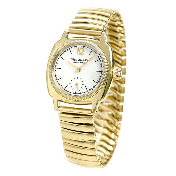 正規品 ヴァーグウォッチ クッサン トゥエルブ 32mm ペアウォッチ スモールセコンド クオーツ メンズ 腕時計 CO-L-012-YGSE VAGUE WATCH COUSSIN 12 アナログ ホワイト×ゴールド ◆VAGUE WATCH(ヴァーグウォッチ)は、吉田真幸が設立した「VAGUE WATCH CO.」のオリジナルブランドです。“アンティークウォッチの雰囲気を手軽に楽しめる腕時計”をコンセプトに、大手メーカーでは表現できないエージング加工や個々のパーツ作り込みにこだわり、独自世界観を表現しています。 1920年代からアンティークウォッチで多くみられるクッションケースと、シリーズ名のとおり 「12」 のアップライトインデックスを配したミニマルなデザインが特徴のコレクション。ケースやブレスをブラッシングしてエージングを施し、アンティークウォッチへの愛情にあふれたヴァーグらしく、ミッドセンチュリーのアメリカでポピュラーだった、コマのつなぎ目がバネ状になった「Sバンド」と呼ばれるブレスレットを採用しています。また、ケースとブレスレットを均一にすることで、ミニマルデザインがさらに深まり、ブレスレット感覚で楽しめます。