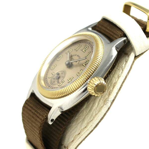 正規品 ヴァーグウォッチ クッサン アーリー ミル 28mm クオーツ NATOタイプ レディース 腕時計 CO-S-007-08WT VAGUE WATCH COUSSIN EARLY MIL 28mm アナログ ゴールド×カーキ ◆VAGUE WATCH(ヴァーグウォッチ)は、吉田真幸が設立した「VAGUE WATCH CO.」のオリジナルブランドです。“アンティークウォッチの雰囲気を手軽に楽しめる腕時計”をコンセプトに、大手メーカーでは表現できないエージング加工や個々のパーツ作り込みにこだわり、独自世界観を表現しています。 初代モデル クッション のミリタリーバージョンが登場。イタリアのGUIDI&ROSELLINI社製(グイディ&ロゼリーニ)のホースレザーを使用した台座にナイロンベルトを組み合わせました。見やすいインデックスもポイント。台座やナイロンベルトは簡単に取り外せますので、ご自身で時計をアレンジしてお楽しみいただけます。ユニセックスでご使用いただけるLサイズとレディースのSサイズ、2サイズ展開。ペアウォッチにもおすすめです。