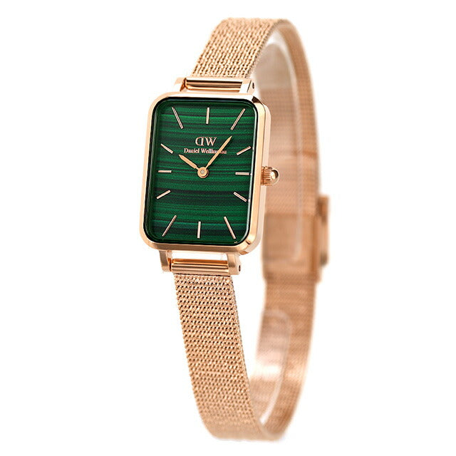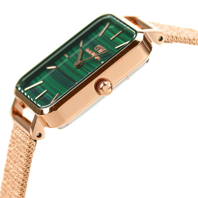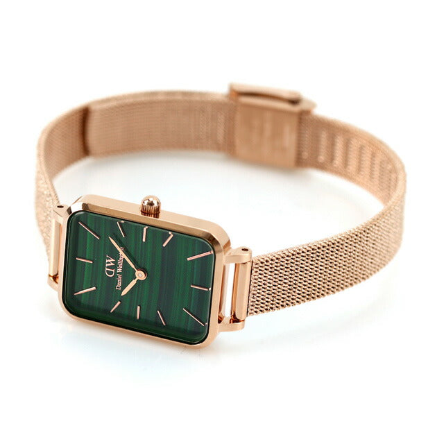 ダニエルウェリントン QUADRO PRESSED MELROSE クオーツ レディース 腕時計 DW00100437 DANIEL WELLINGTON QUADRO PRESSED MELROSE アナログ グリーン ピンクゴールド ◆DANIEL WELLINGTON(ダニエルウェリントン)は、2011年に設立、スウェーデン発祥のウォッチブランド。創業者 フィリップ・タイサンダーが出会った紳士的で魅力的な男性の名前がブランド名の由来となっています。現在、世界25カ国で展開。どこまでも薄く、シンプルで洗練されたケースで、不要な機能を一切排除したトラディショナルな作りは流行に左右されません。 ビンテージ感が溢れる設計、目に惹かれる輝き、古代ギリシャ麦穂式の斬新なストラップ。ヴィヴィットな躍動感で手首に魅力と活力を注入します。ビジネスからカジュアルスタイルにはもちろん、フォーマルにも合わせやすく、年代問わずお使いいただけます。
