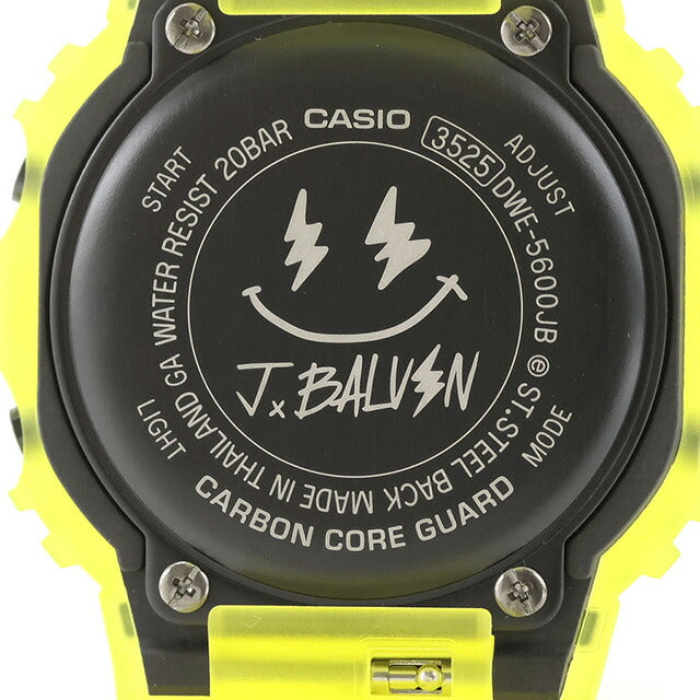 7年保証キャンペーン gショック ジーショック G-SHOCK ジェイ バルヴィン コラボレーションモデル DIGITAL 5600シリーズ クォーツ 電池式 替えベルト クォーツ 電池式 メンズ 腕時計 DWE-5600JB-1A9DR J Balvin Collaboration Model DIGITAL 5600 SERIES デジタル ブラック スケルトンイエロー ◆G-SHOCKから、コロンビア出身で世界を舞台に活躍するアーティストJ Balvin(ジェイ バルヴィン)とのコラボレーションモデルです。時計のフェイスにはJ Balvin本人によるスペイン語の手書き文字を配置しました。全体を半透明マットイエローで統一し、美錠、裏蓋、ボタンをブラックで配色。交換可能なブラックベゼルとバンドが付属しています。彼のシグネチャーであるライトニングボルトを遊環に型抜きするとともに、裏蓋、LEDバックライトにもロゴを配置。半透明ブラックのパッケージとともに、世界トップクラスの音楽アーティストとのコラボレーションを体現する、個性的なG-SHOCKとなっています。 国内モデル品番:DWE-5600JB-1A9JR