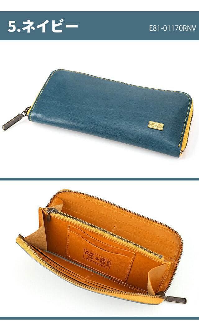 正規品 プラスエイトワン 長財布 メンズ 栃木レザー 革 レザーウォレット 小銭入れ 日本製 E81-01170 +81 ◆ PULUS EIGHT ONE (+81)は、日本の品質の良さをもっと多くの人に知っていただくために誕生しました。日本製に拘り熟練の職人さんが一つ一つ丁寧に製造しています。デザインから製造全ての工程を日本で行っていますので、Made In Japan のクオリティをお楽しみ下さい。※一つ一つ手作業になりますので若干のずれが生じる場合がございます。また、栃木レザーの自然の風合いをお楽しみいただくため、無駄な表面加工は一切しておりません。使えば使うほど色、艶が出てきますので世界に一つだけ、自分だけのエイジングもお楽しみいただけます。革の厚みにも拘り、商品の耐久性を考えてギリギリまで薄く仕上げています。薄くてコンパクトそして1枚革で丈夫。内部まで全て栃木レザーを使用しています。 【1】ブラック 黒 E81-01170RBK 【2】ダークブラウン E81-01170RDB 【3】キャメル E81-01170RCA 【4】イエロー E81-01170RYE 【5】ネイビー E81-01170RNV